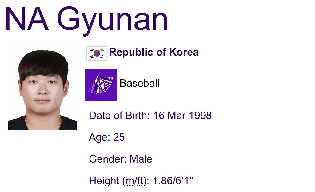 항저우 아시안게임 야구 국대 프로필 모음 (24명)