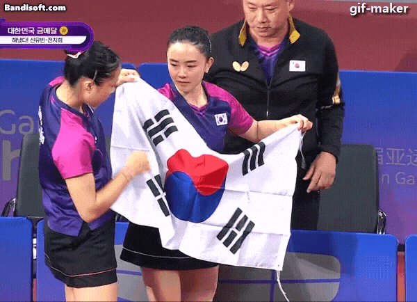 태극기 건곤감리 위치확인 하는 신유빈.gif