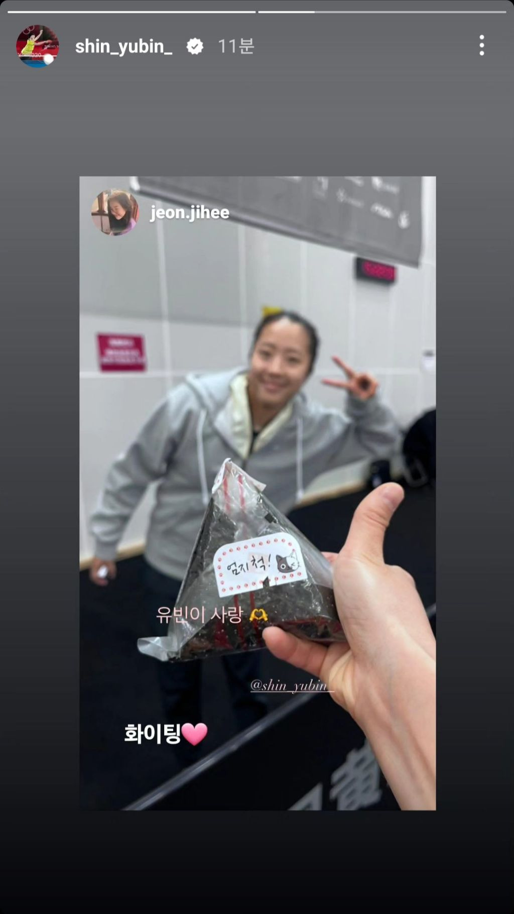 오늘자 전지희,신유빈 인스타그램 스토리