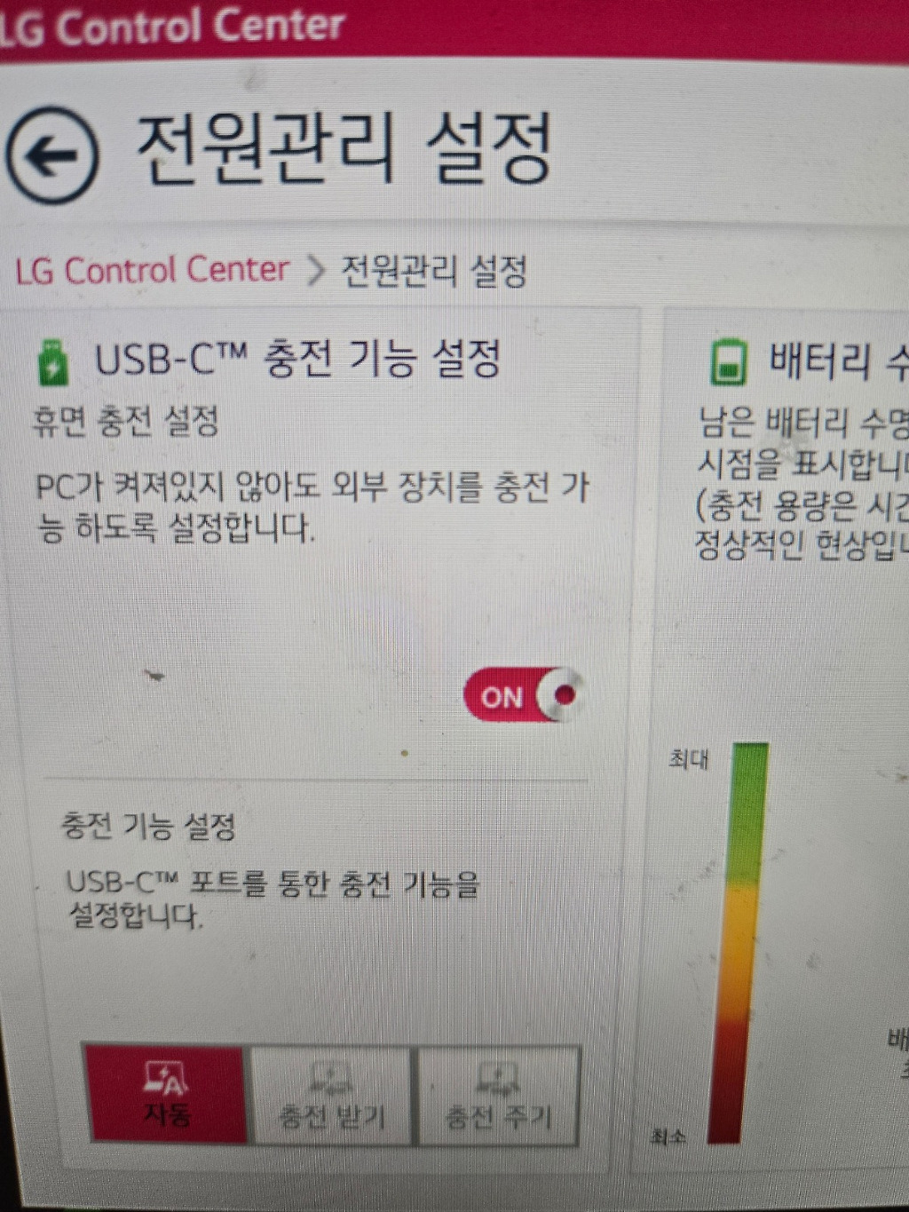 전원관리 설정에 들어갔다 usb- 충전기능 설정을 발견하다....