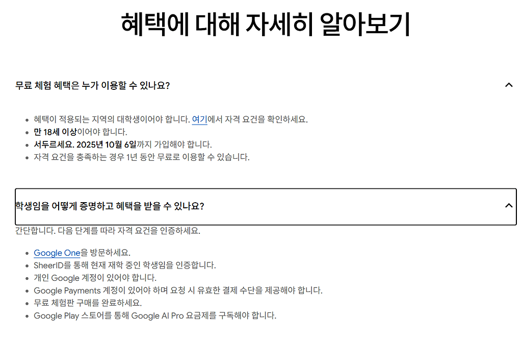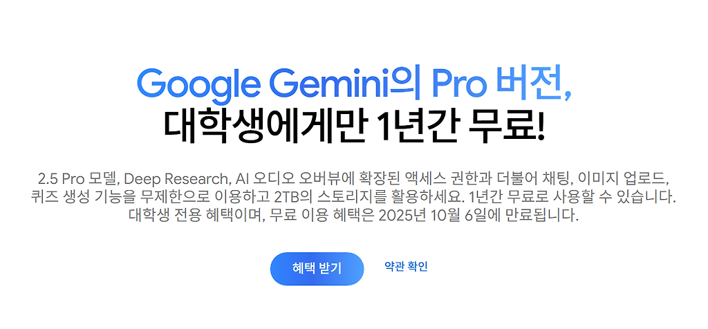 월 29,000원 상당의 제미나이를 18세 이상의 대학생 대상으로 1년간 무료 제공 이벤트 중