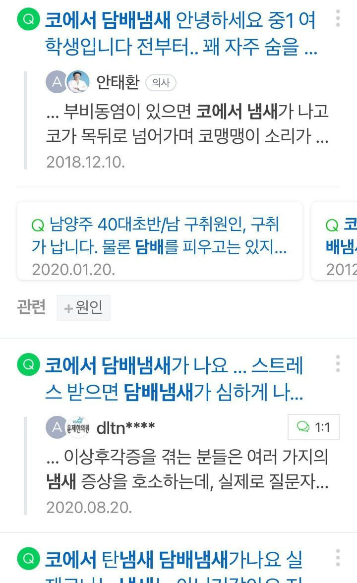 비염인 나한테만 담배냄새(같으면서 뭔가 태우는 탄내?연기냄새 같기도 하고..아무튼 매캐한 냄새) 나길래 머선일이고 했는데 같은 증상이신 분들이 많길래 퍼옴