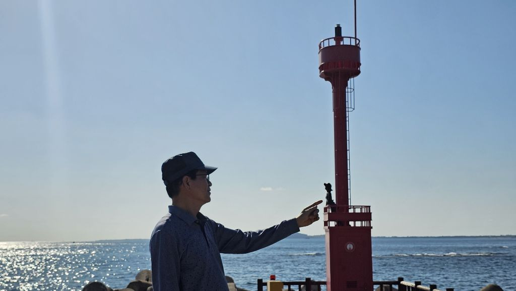 방파제에서( 빨간등대에 서있는 소녀상 보소!)