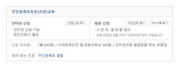 서비스 중 주민등록등본(초본)을