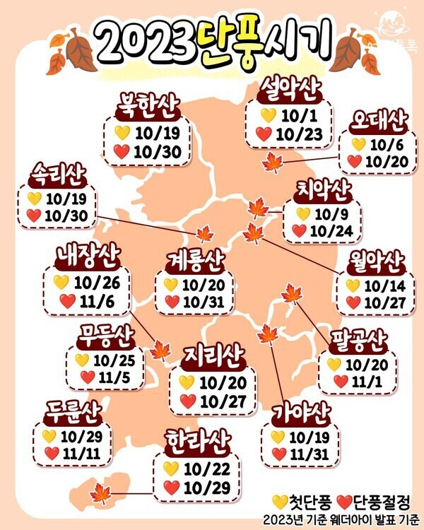 2023 국내 산 단풍 시기