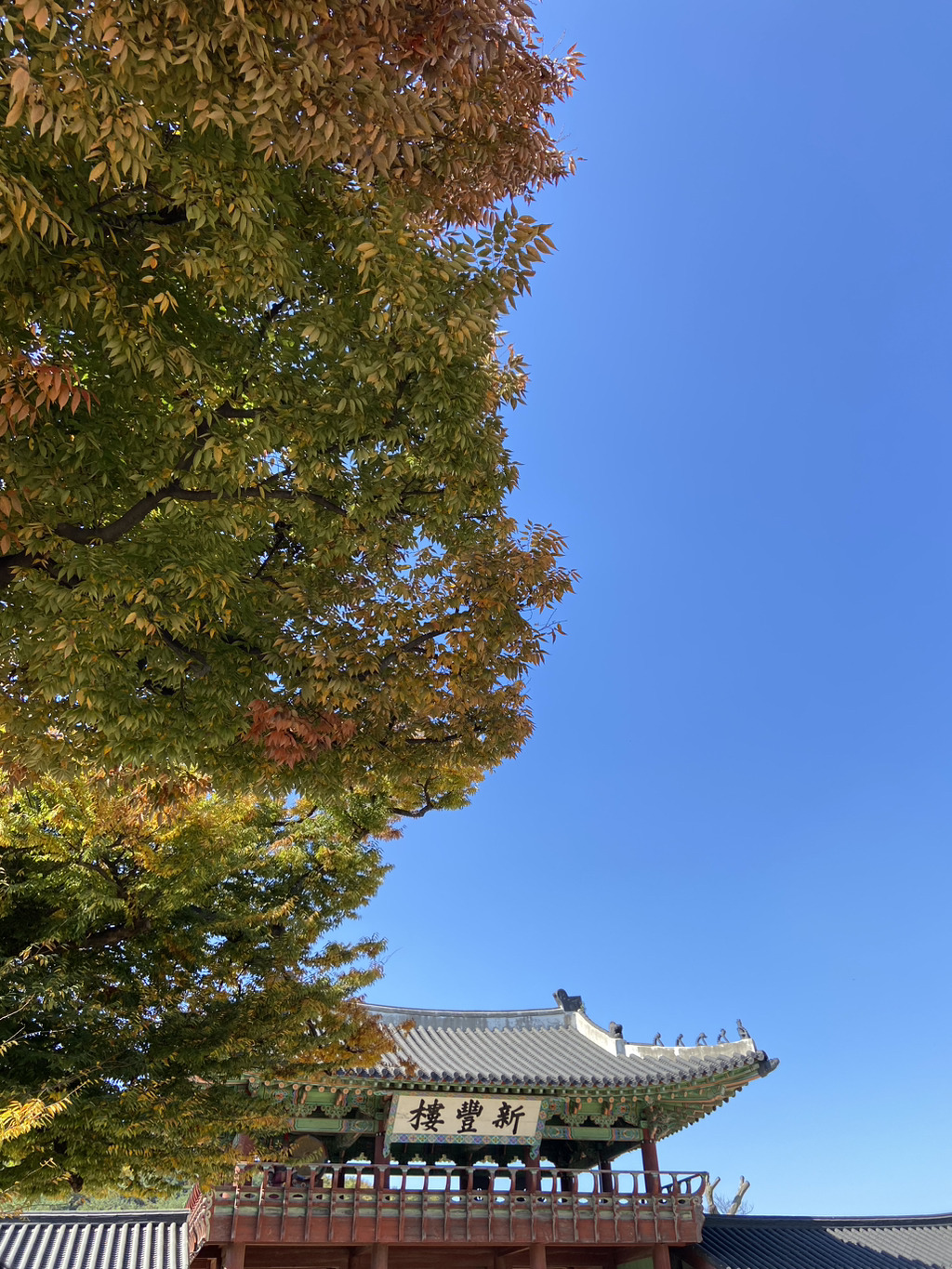 완전히 붉고 노랗지는 않지만 푸른하늘과 대비되는 멋진 색이네요