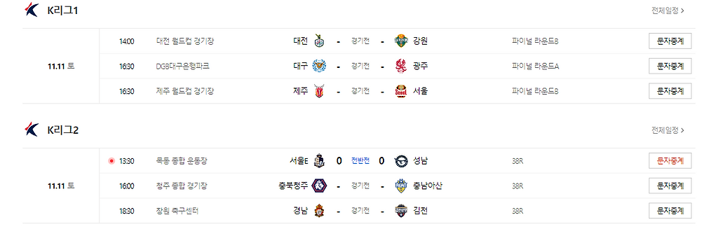 댓글 2이번 주말 K리그 경기가 1부 2부 모두 열립니다.