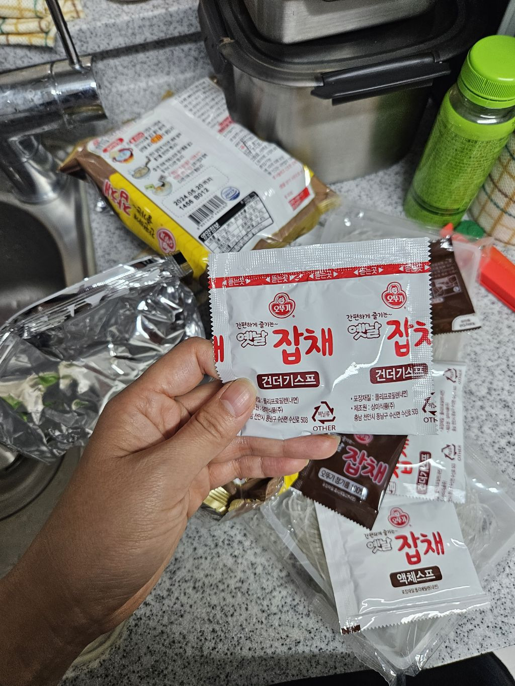 건더기스프는 먼저 물과 함께 끓여주고 그 후에 당면을 넣는겁니다^~^신기한게 진짜 잡채랑 맛의 차이가 거의 없음;신기방기~간단히 잡채 땡길때 드셔도 좋을듯 합니당 추천!