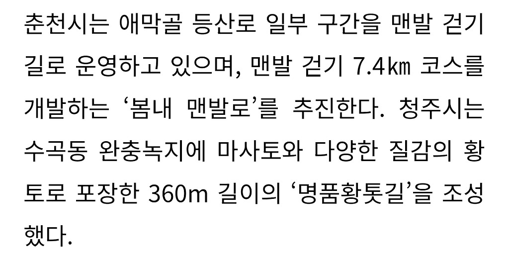 서울은 물론이고 전국 지자체에서 맨발산책로 조성중