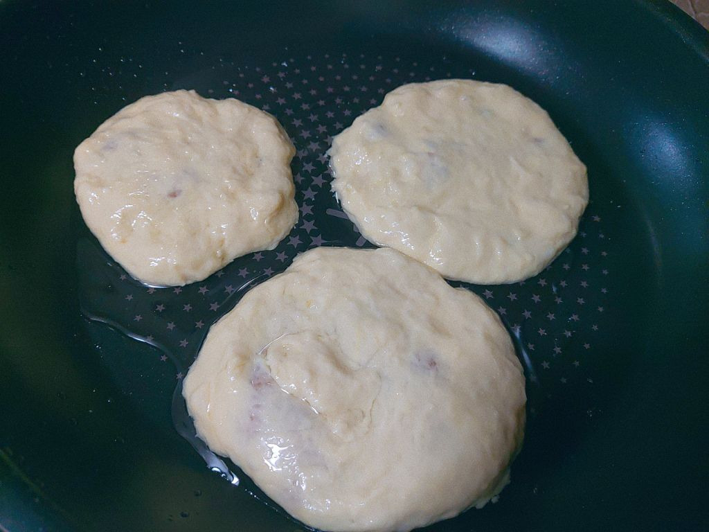 후라이팬에 기름 두르고, 비닐장갑에도 기름 묻히고, 모양부터 잡았어요.