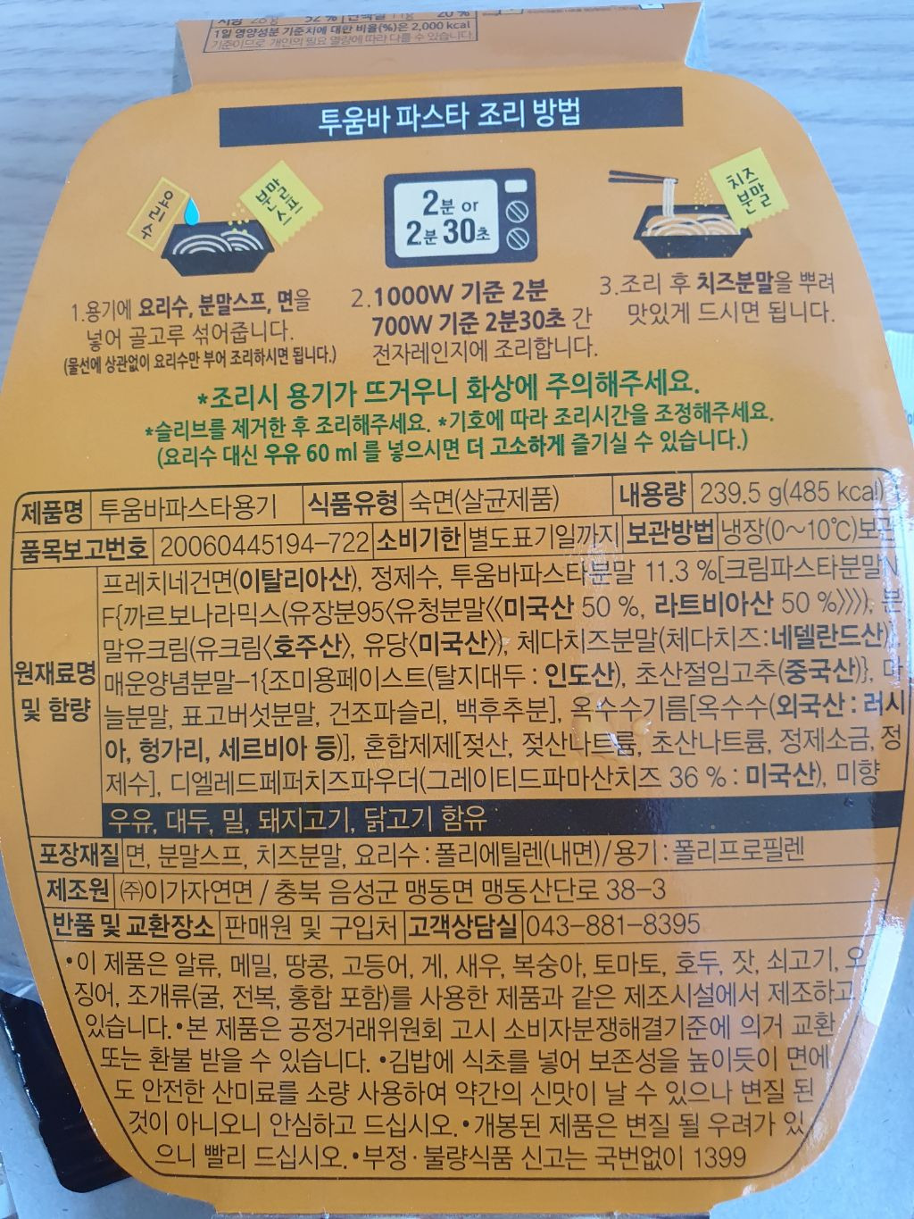 맛은 먹을만했고 조리시간을 적힌거보다 +30초 더했는데 면도 더 잘익고 소스도 꾸덕해지고 좋았던거같음
