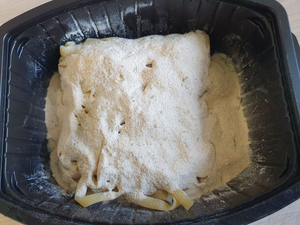 면에 요리수를 붓고 큰 가루를 부은 사진.. 이게...파스타가 된다고...??;;했는데...