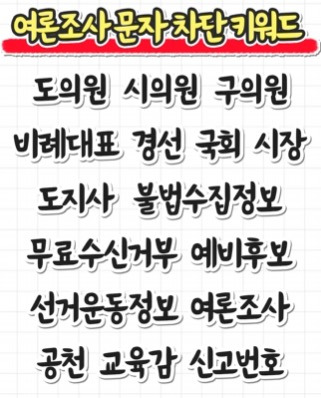 여론조사 = 사진 속 키워드를 모두 차단메세지로 등록하면 폰이 조용해집니다..