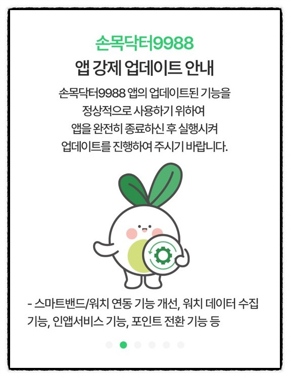 '손목닥터9988' 어플앱 강제 업데이트 안내