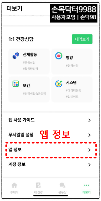 '더 보기'에서 중간쯤에 '앱 정보'를 마지막으로 클릭합니다.