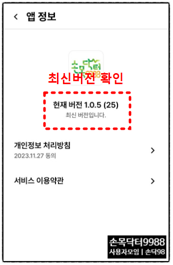그러면 이제 '앱 정보' 창에서 '손목닥터9988' 최신번전을 확인하실 수 있습니다.
