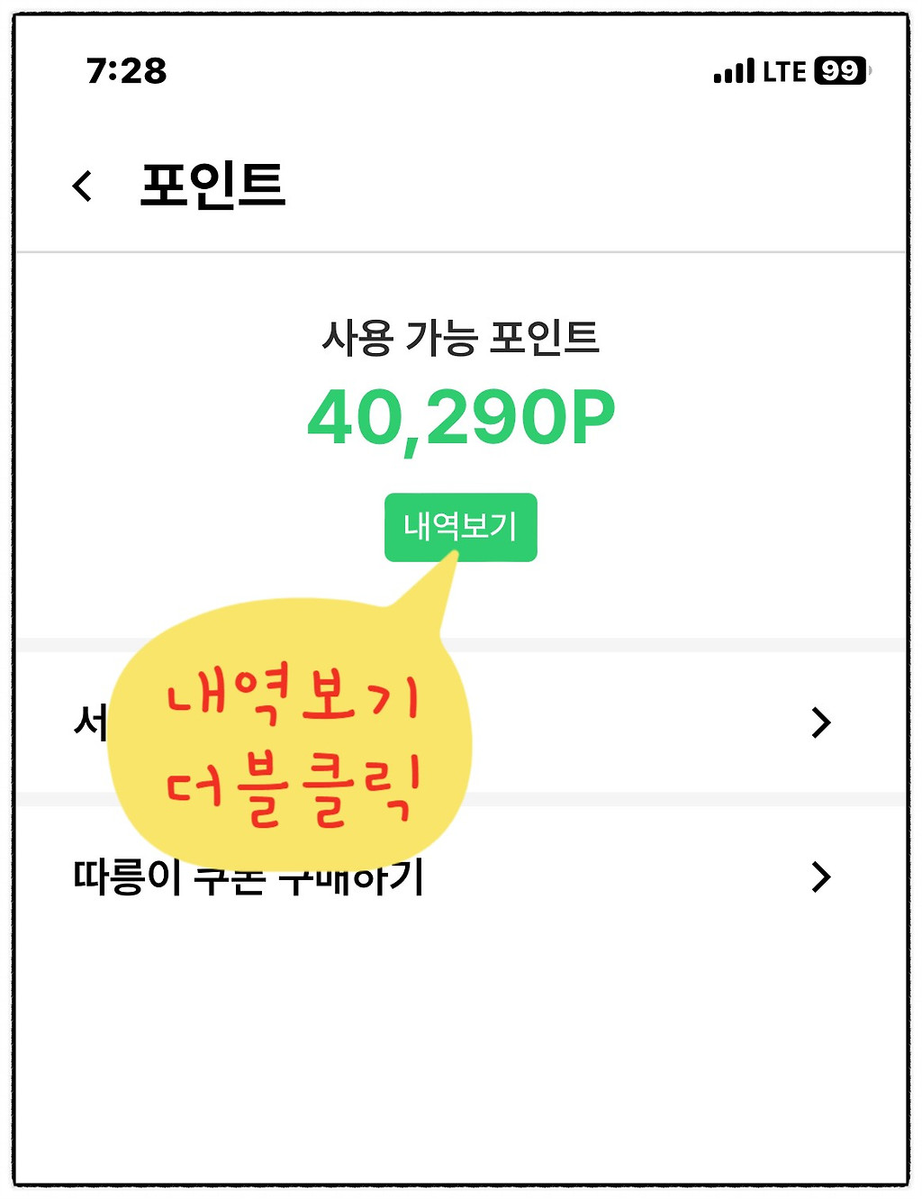 사용 가능 포인트 40,290P 숫자 밑에 ' 내역보기' 클릭합니다.