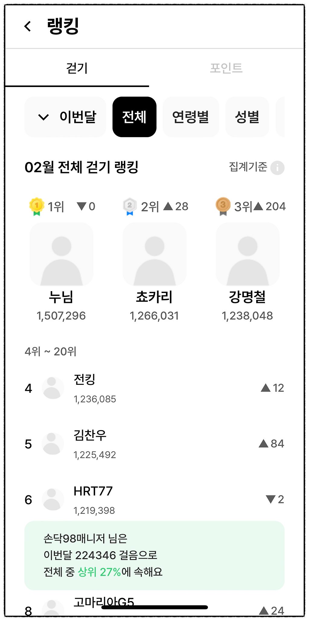 한번쯤 천천히 잘 따라해서 나의 현재 '걷기 순위와 포인트 순위'