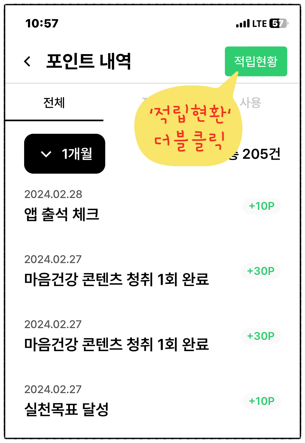 < 포인트 내역에서 바로 오른쪽 '적립현황' 클릭합니다.