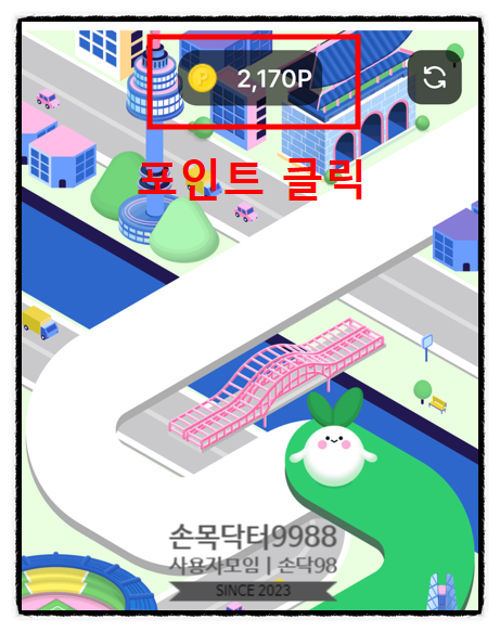 메인화면에서 중앙에 있는 돈모양 '2,170P'를 클릭합니다.