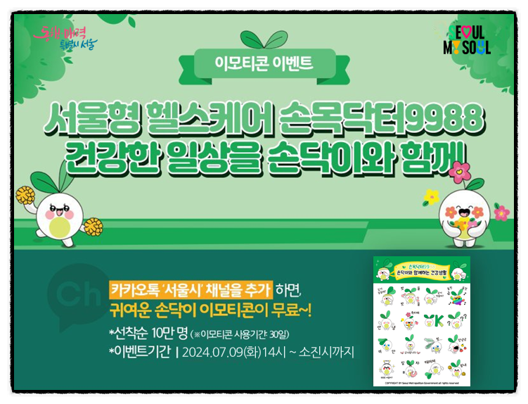 서울시에서 <손닥이와 함께하는 건강생활> 이모티콘 1개월 사용권 증정