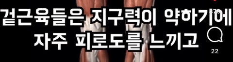 겉근육의 기능 : 주로 큰 힘 발휘, 무게 들기 (근력 > 지구력)