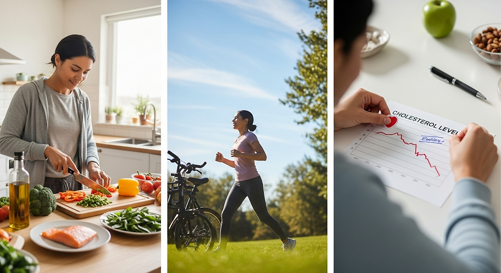 두 번째는 규칙적인 운동입니다. 유산소 운동은 HDL 콜레스테롤을 높이고 LDL과 중성지방을 낮추는 효과가 있습니다. 빠르게 걷기, 자전거 타기, 수영 등을 주 3~5회, 30분 이상 실천해 보세요. 근력 운동을 병행하면 대사 기능이 향상되어 더욱 효과적입니다.