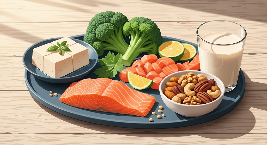또한 칼슘과 비타민 D는 골다공증 예방에 필수적입니다. 갱년기 이후에는 여성호르몬 감소로 뼈 손실이 빠르게 진행되기 때문에 우유, 멸치, 시금치, 브로콜리, 연어 등 칼슘이 풍부한 식품을 자주 섭취하는 것이 좋습니다. 비타민 D는 햇빛을 쬐거나 연어, 달걀노른자, 버섯 등을 통해 얻을 수 있으며, 뼈 속 칼슘 흡수를 도와줍니다.
