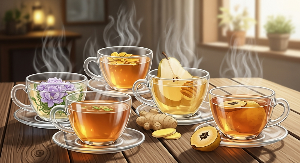 셋째, 생강차는 몸을 따뜻하게 하고 면역력을 높이는 차로 잘 알려져 있습니다. 생강 속 진저롤(gingerol)과 쇼가올(shogaol) 성분은 항염·항균 작용을 해 기관지의 염증을 완화합니다. 특히 몸이 찬 체질로 인해 기관지가 약한 사람에게 잘 맞으며, 꿀을 함께 넣으면 자극이 줄어들고 맛도 부드러워집니다.