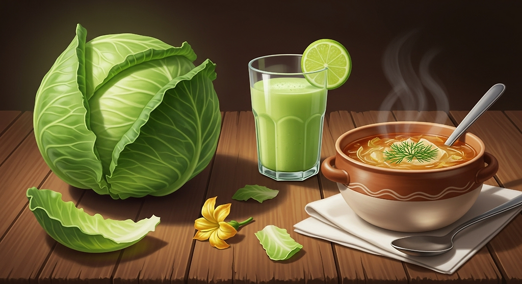 양배추에는 폴리페놀과 글루코시놀레이트(Glucosinolates) 같은 항산화 성분이 들어 있어 염증 반응을 억제하고, 세포 손상을 막아 위점막을 안정시킵니다.