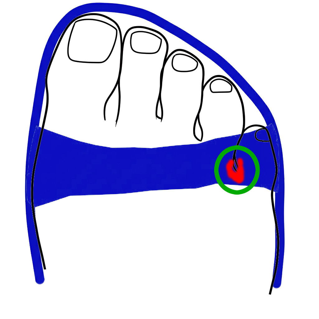 앞부분이 터진 샌들이나 슬리퍼를 신어도 새끼발가락 옆의 골은 여전히 위험합니다. 그 이유는 골의 깊이 때문입니다.