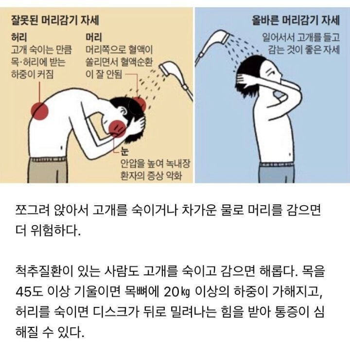 잘못된 머리감는 자세