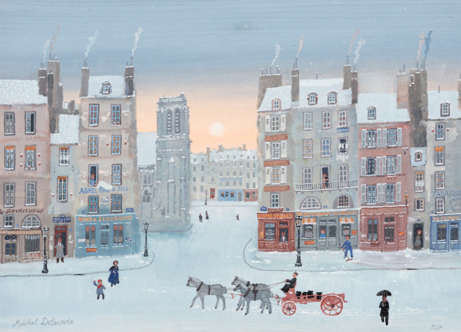 파리 토박이인 들라크루아는 1970년대부터 지금까지 50여 년간 ‘파리의 풍경’을 주제로 그려왔다. 그가 태어난 건 1933년. 19세기 말~20세기 초 문화예술이 살아 숨 쉬던 파리의 전성기, ‘벨 에포크’(아름다운 시대)의 흔적이 남아있던 시절이다. 작가는 “파블로 피카소를 비롯한 전설적인 화가들이 파리의 아름다운 길거리를 거니는 광경이 나를 그림으로 이끌었다”고 설명한다.