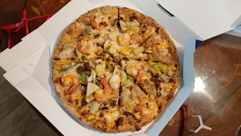 그리고 오늘 아빠가 도미노피자 블랙타이거 쉬림프 피자를 사주셨습니다.