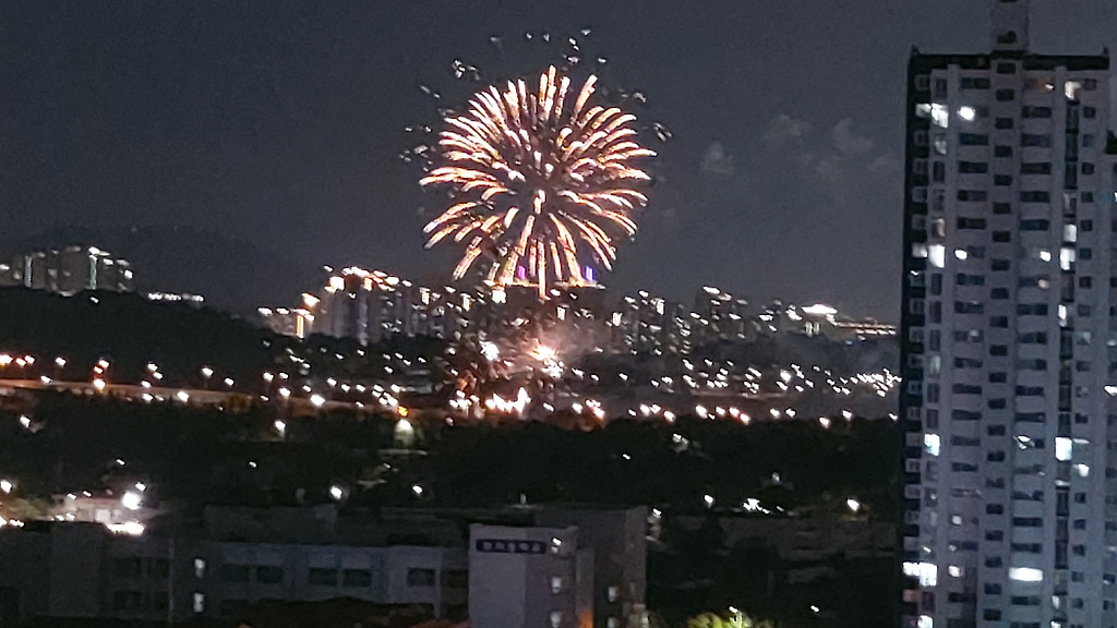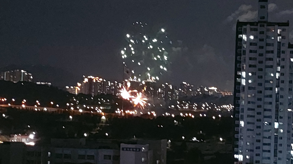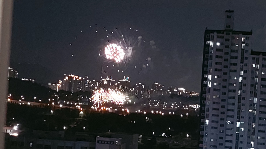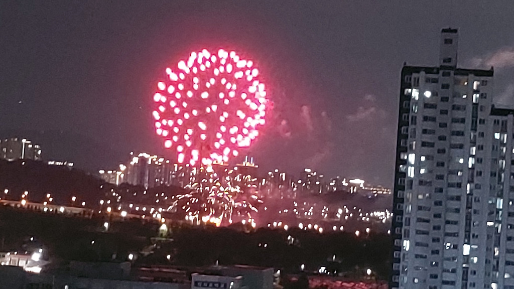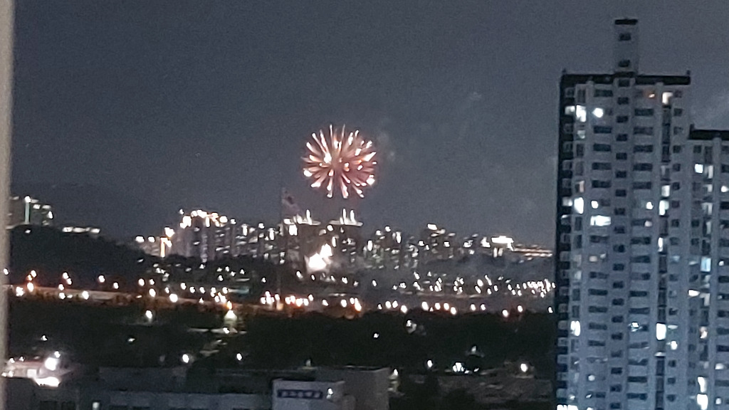 밤에는 집에서 구리 코스모스축제 불꽃놀이를 보았습니다.