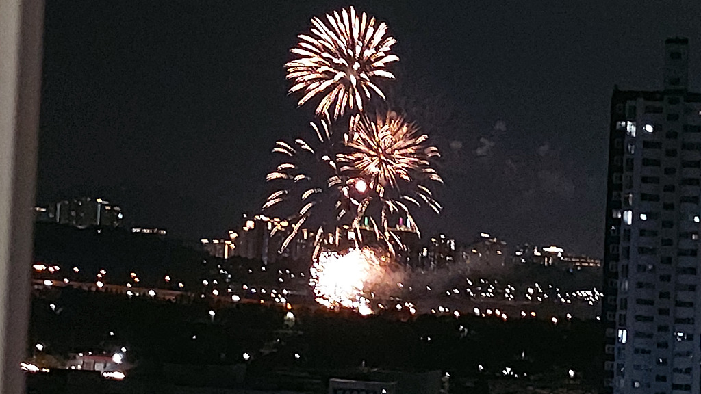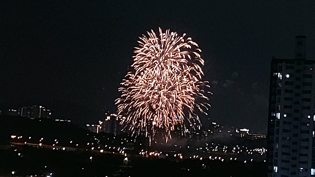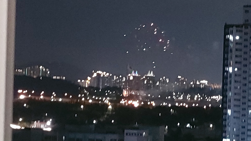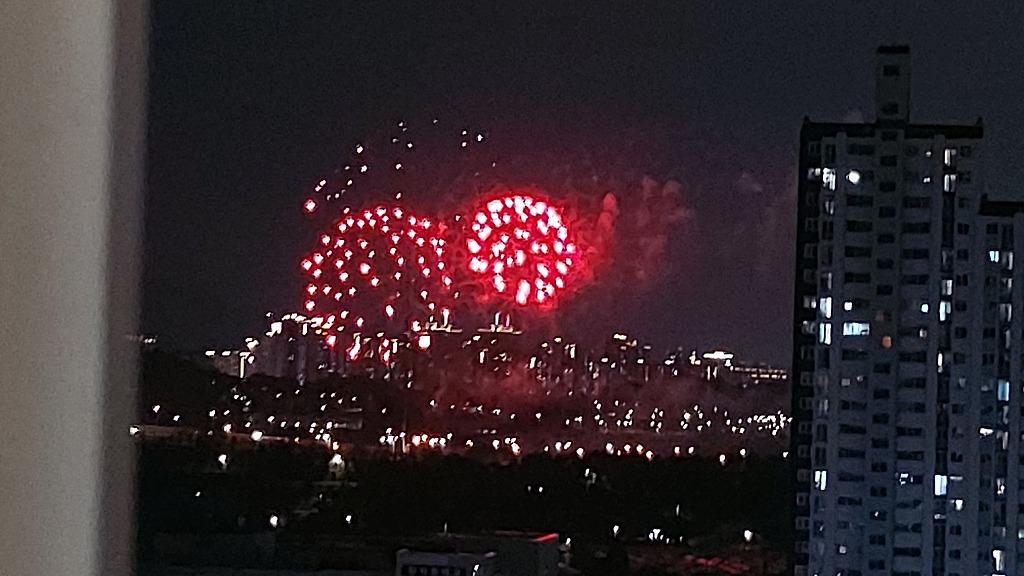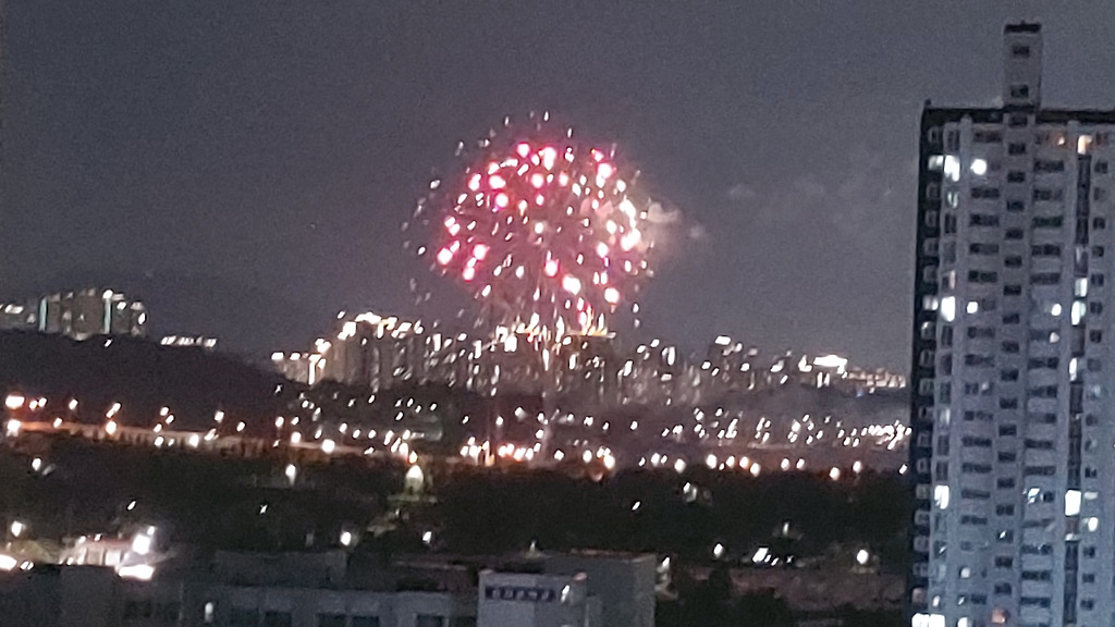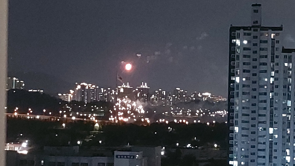 밤에는 집에서 구리 코스모스축제 불꽃놀이를 보았습니다.