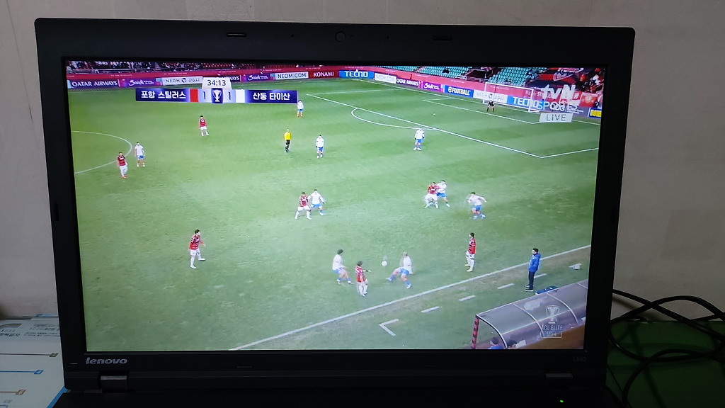 집에서 AFC 챔피언스 리그 엘리트 포항 스틸러스 대 산둥 타이잔 중계방송을 시청하였습니다.