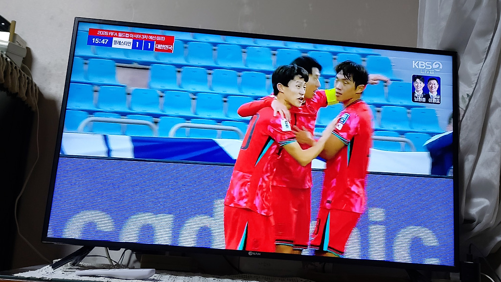 오늘은 2026 캐나다/미국/멕시코 월드컵 예선 팔레스타인vs대한민국 중계방송을 시청하였습니다.