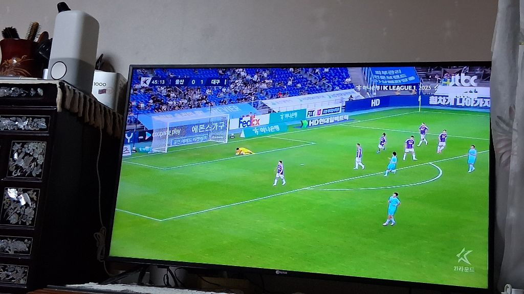 저녁에는 k리그1 울산 hd호랑이 대 대구fc 중계방송을 시청하였습니다.
