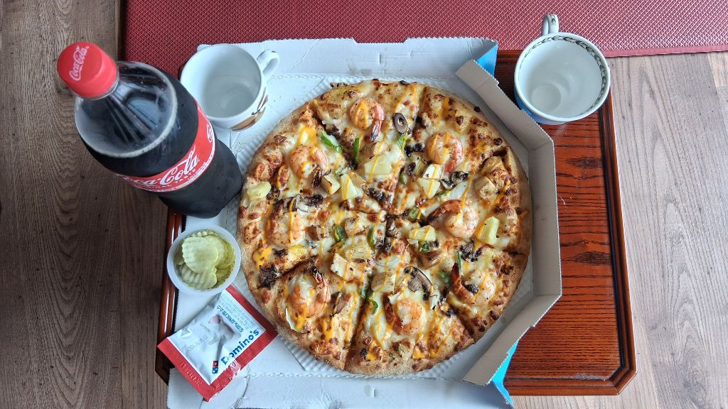 점심으로 도미노피자 블랙타이거 쉬림프 피자를 시켜먹고