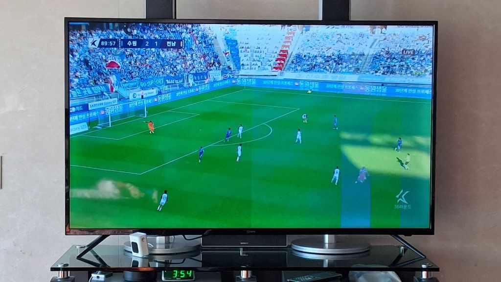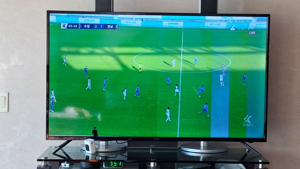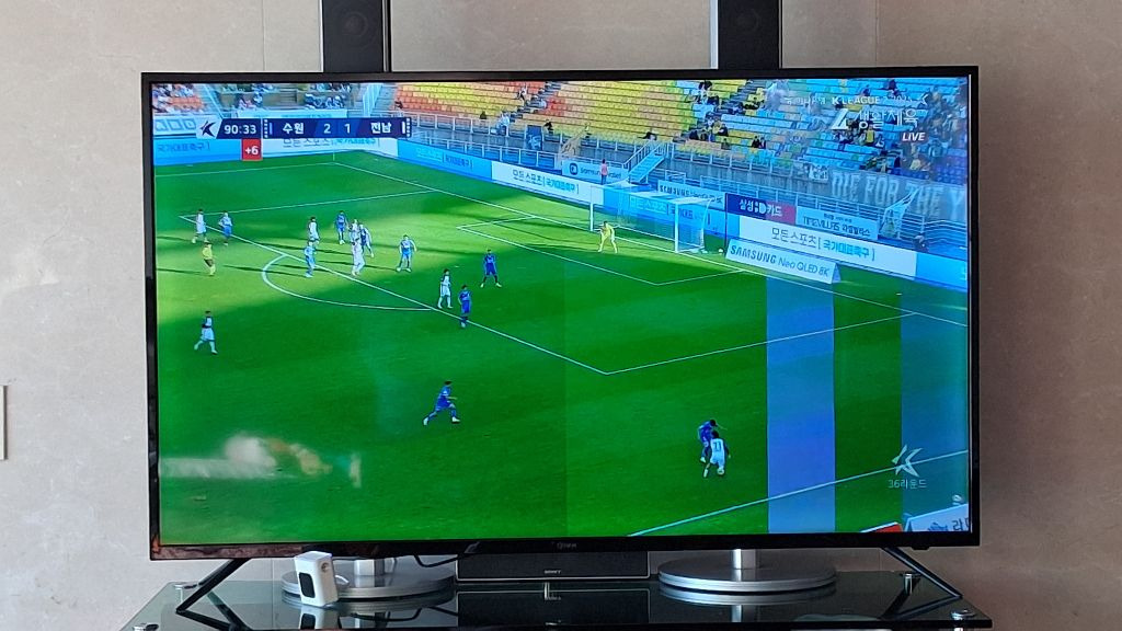 귀가후 k리그2 수원삼성 대 전남 드래곤즈 중계방송을 시청하였습니다.