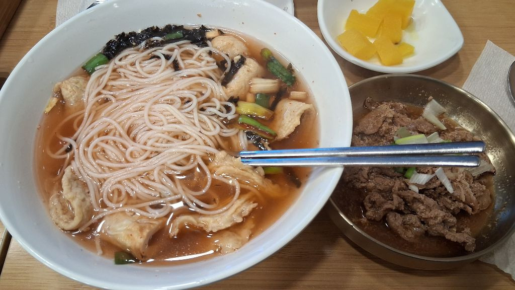 명동할머니국수 시청점에 가서 저녁식사로 오뎅국수와 돼지불고기를 사먹었습니다.