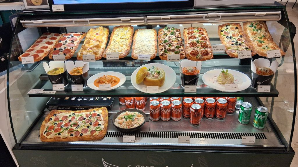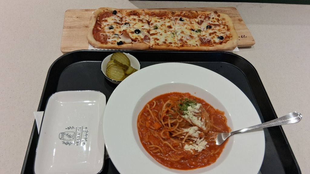 로사안젤라피자파스타 롯데백화점구리점에 가서 볼로네제 스파게티와 안젤라콤비 피자를 사먹었습니다.