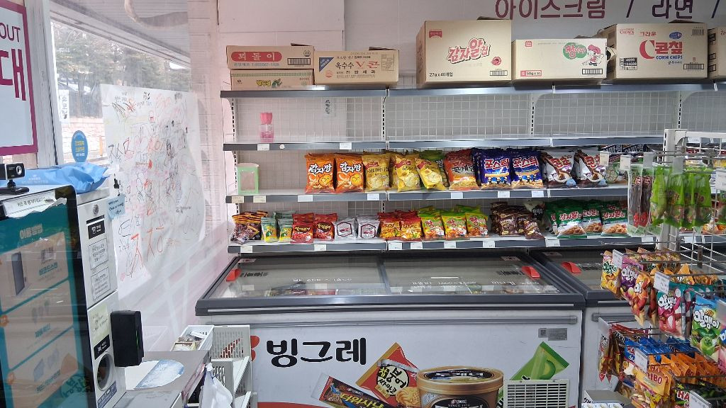 요동네 아이스크림에 가서는 아이스크림을 샀습니다.
