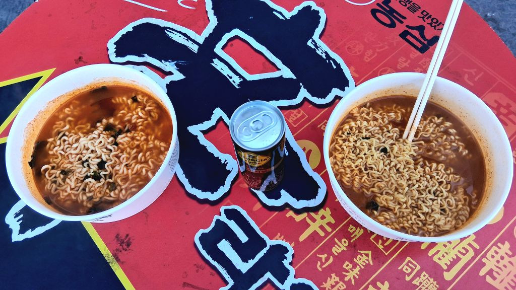한강라면을 사먹고 조지아캔커피 한잔했습니다.
