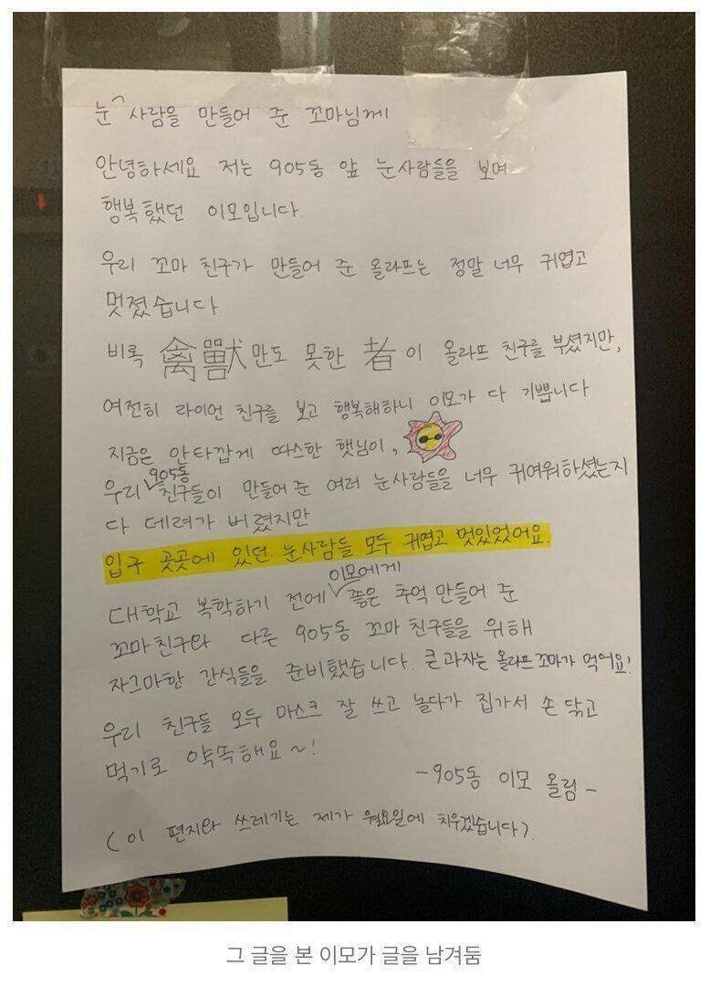 눈사람 부순 아파트 K-결말..... (훈훈함 주의)