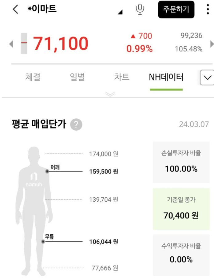 이마트 주식을 산 모든 사람들이 물려있는 상태