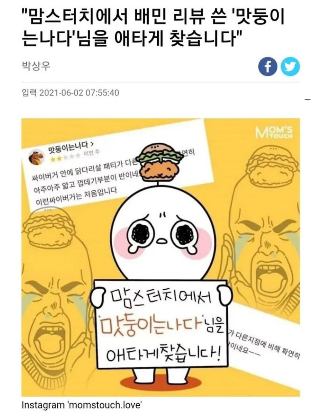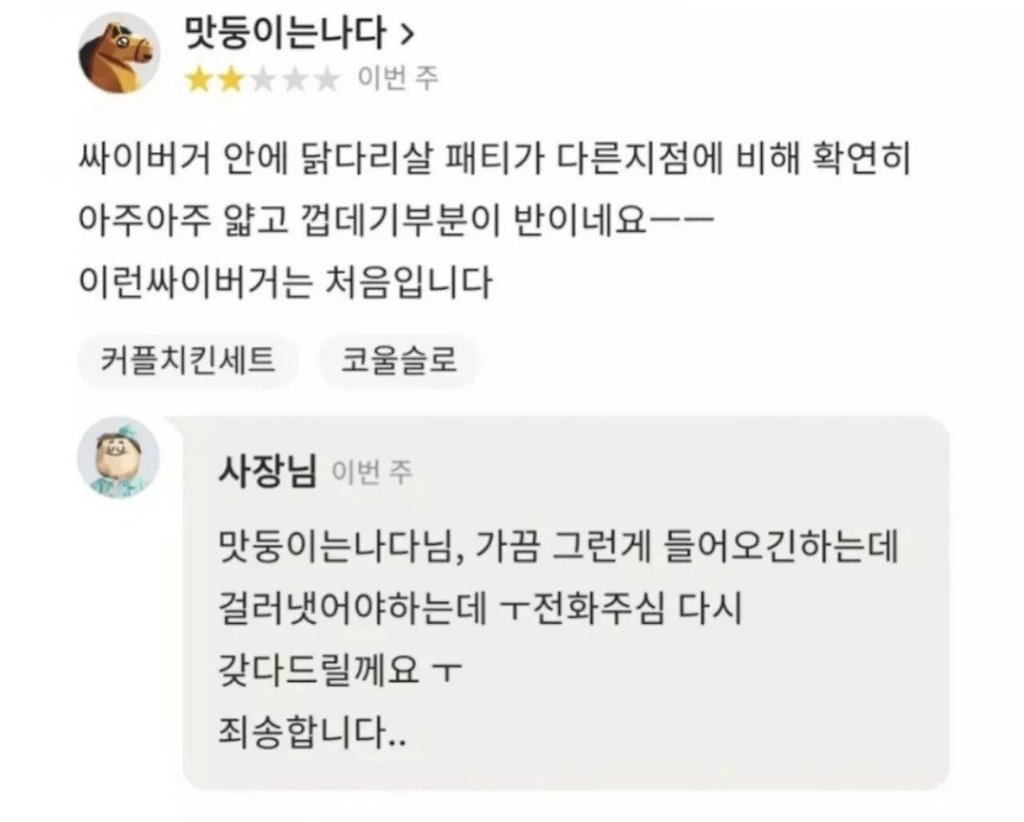 스노우볼이된 고객이 맘스터치 싸이버거 먹고 남긴 리뷰