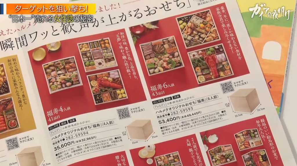 1월 1일 가족들이 모여 먹는 오세치요리 도시락도 꾸준한 사랑을 받고 있다. 매년 독자들이 참여하는 기획 회의를 통해 견본 요리를 만들어 시식회를 통해 최종 상품을 결정한다. 제품개발 책임자는 현지언론 인터뷰에서 "동네 슈퍼마켓에서 찾을 수 있는 제품을 판매하는 것은 우리의 일이 아니다. 고객이 잡지와 우편 주문 카탈로그를 열고 '내가 찾던 상품이 여기에 있네'라는 감탄사가 저절로 터지게 하는 제품을 만들려고 한다"고 말했다.