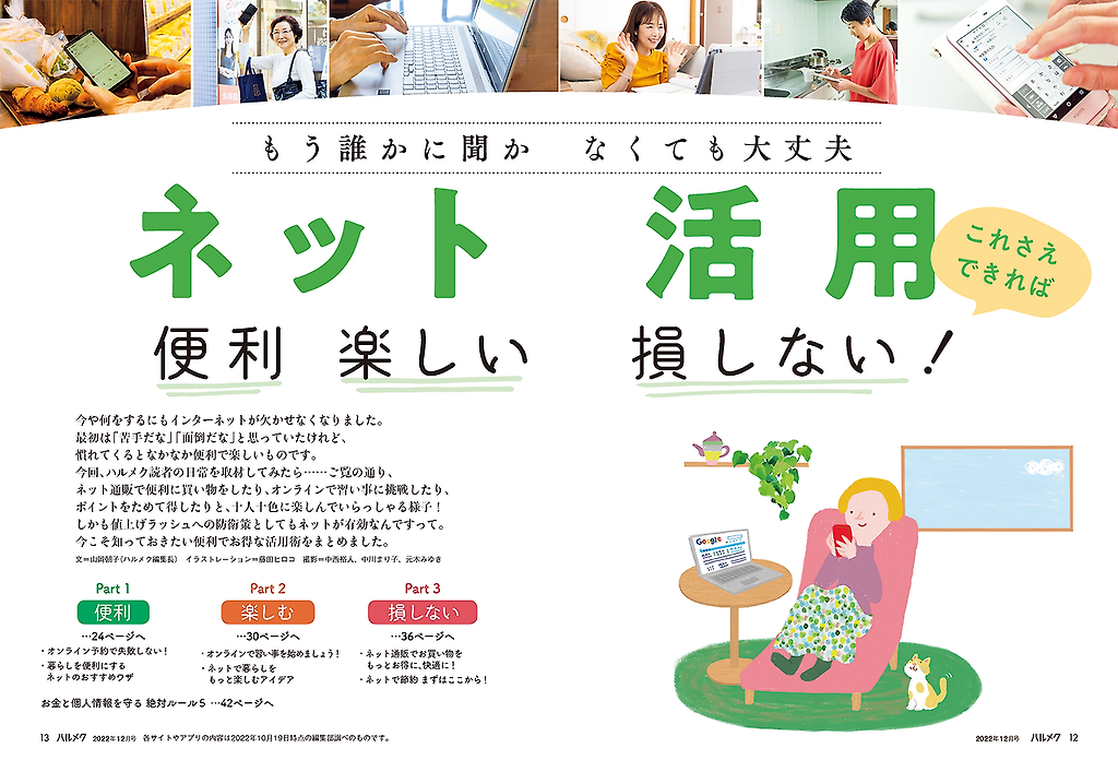 독자 조사를 기반으로 요리, 미용, 패션, 건강, 가사, 여행, 금융 등 다양한 주제를 다룬다. 최근호에는 '스마트폰 사용법', '여름 야채를 맛있게 먹는법' '의자에 앉아 할 수 있는 가벼운 체조' 등을 담고 있다.